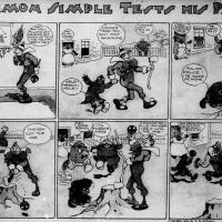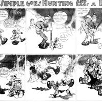 Ed Carey's Simon Simple is a wonderful exemplar of that most delightful comic archetype: the completely insane man, sowing chaos in his wake for no better reason than his own deranged whim. He messes with his father, local police, polite society, and for nothing but his own amusement. Needless to say, I love him. And I'm not alone in my love; Simon ran in papers for seven years in the aughts of the last century, which is an eminently respectable run in those mercurial times. Then, too, you'd have a hard time convincing me that Bill Griffith was unfamiliar with the character, as his Zippy the Pinhead character bears such a strong resemblance to Simon... We have a decent chunk of Simon's seven-year run for you here, today, from June of 1904 through June of 1906. I think you'll enjoy it.