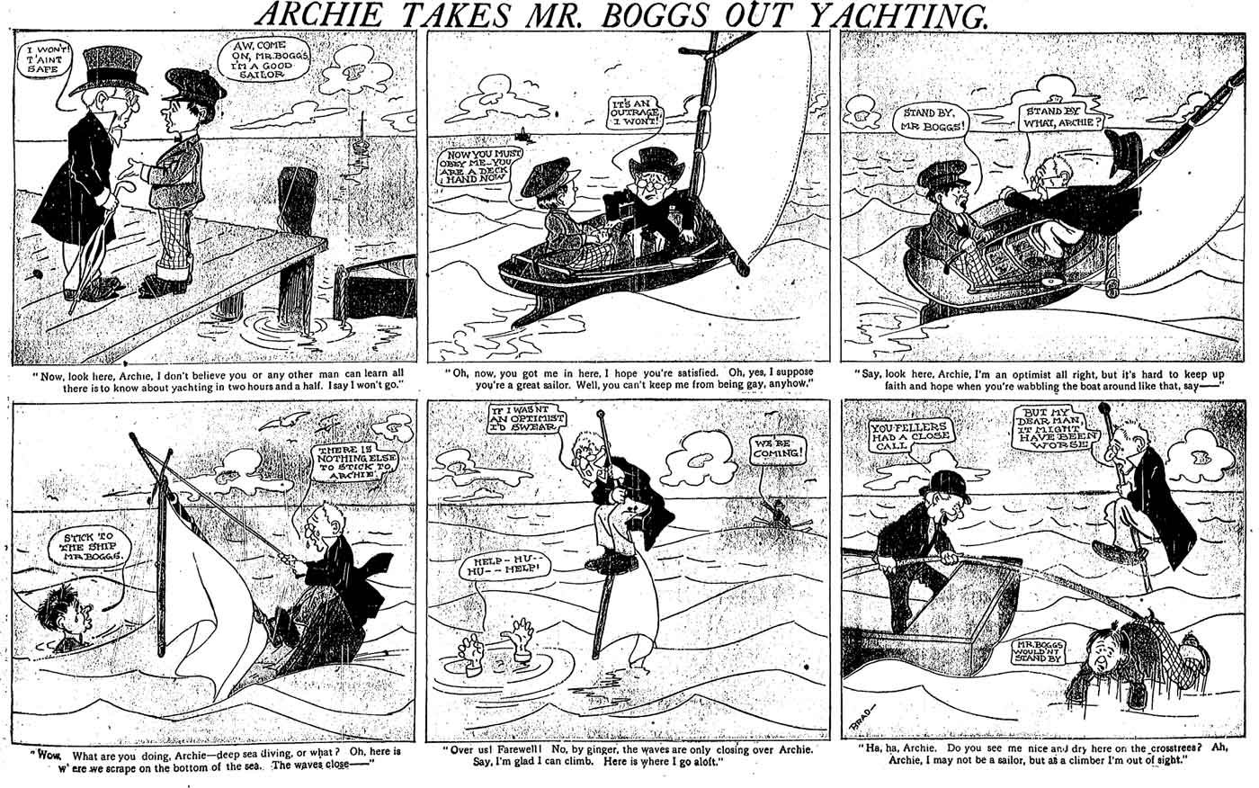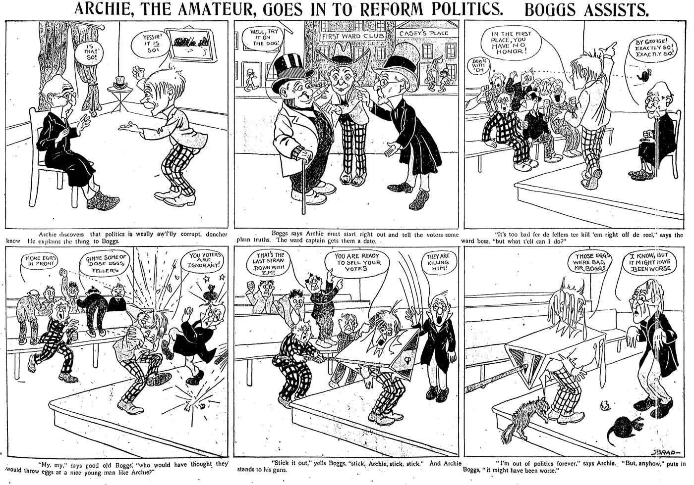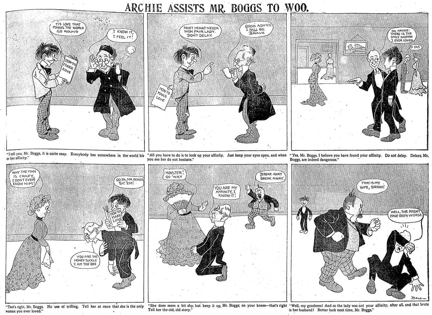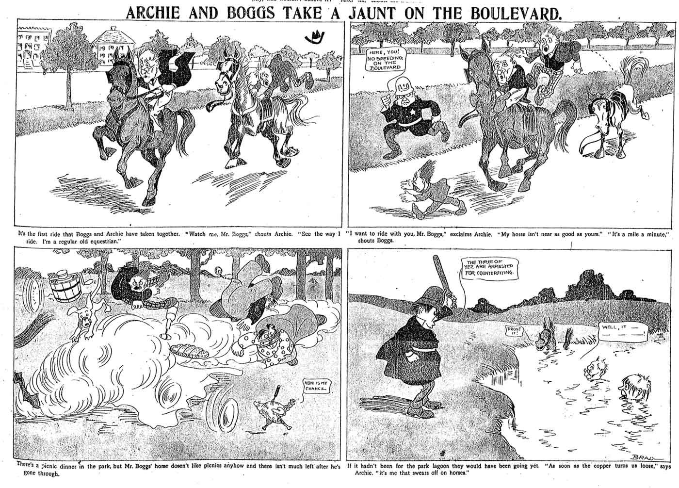 Archie the Amateur & Boggs the Optimist, Ingenious Ruggles, Innocent Ike, Oliver Meddle, and Superstitious Muggs were all created by the ubiquitous "Brad" Bradford, and they all share the same dedication to naming conventions. Each character is summed up neatly by his appellation, and the gags unfold from there. Despite their hoary origins, there are some clever gags in these, and it's fun to see the characters intersect and cross over.