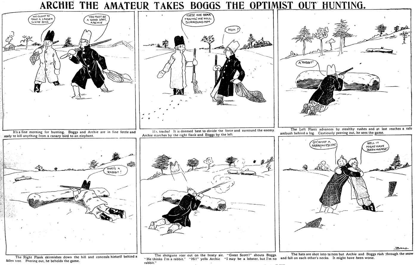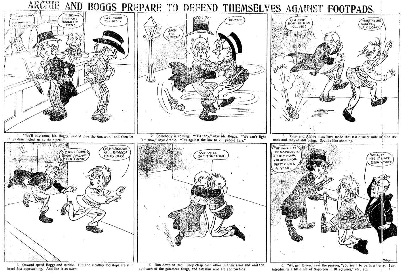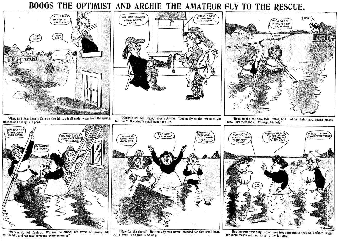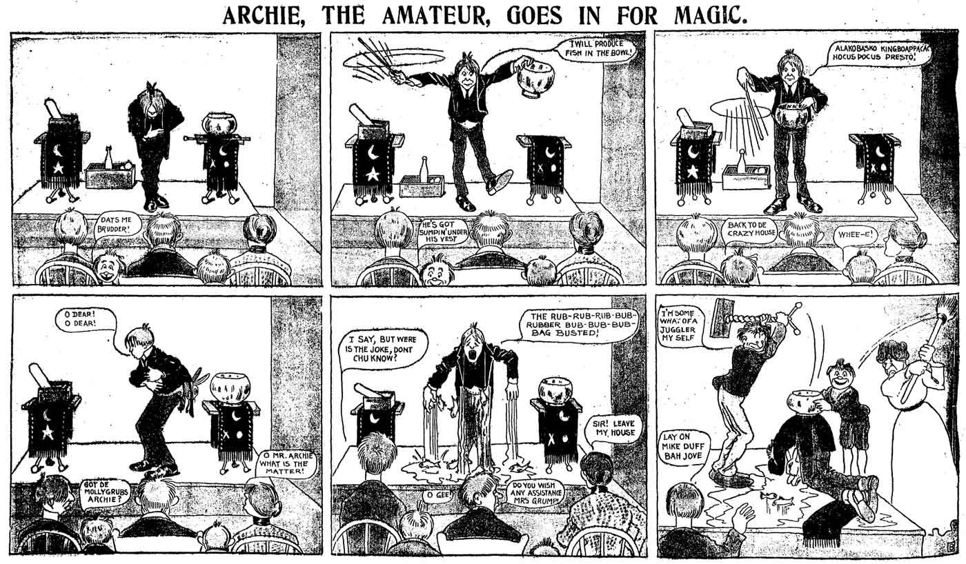 Archie the Amateur & Boggs the Optimist, Ingenious Ruggles, Innocent Ike, Oliver Meddle, and Superstitious Muggs were all created by the ubiquitous "Brad" Bradford, and they all share the same dedication to naming conventions. Each character is summed up neatly by his appellation, and the gags unfold from there. Despite their hoary origins, there are some clever gags in these, and it's fun to see the characters intersect and cross over.