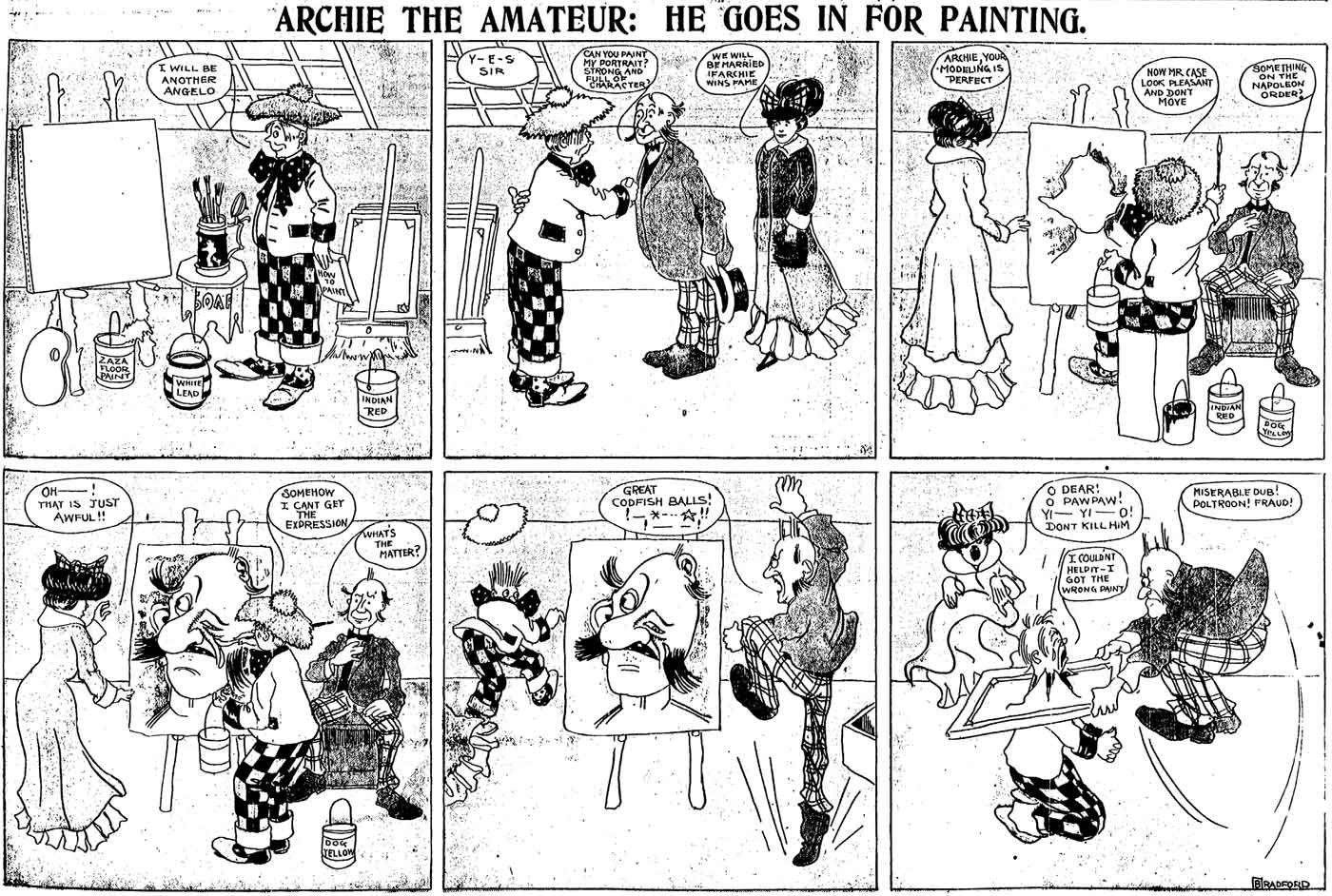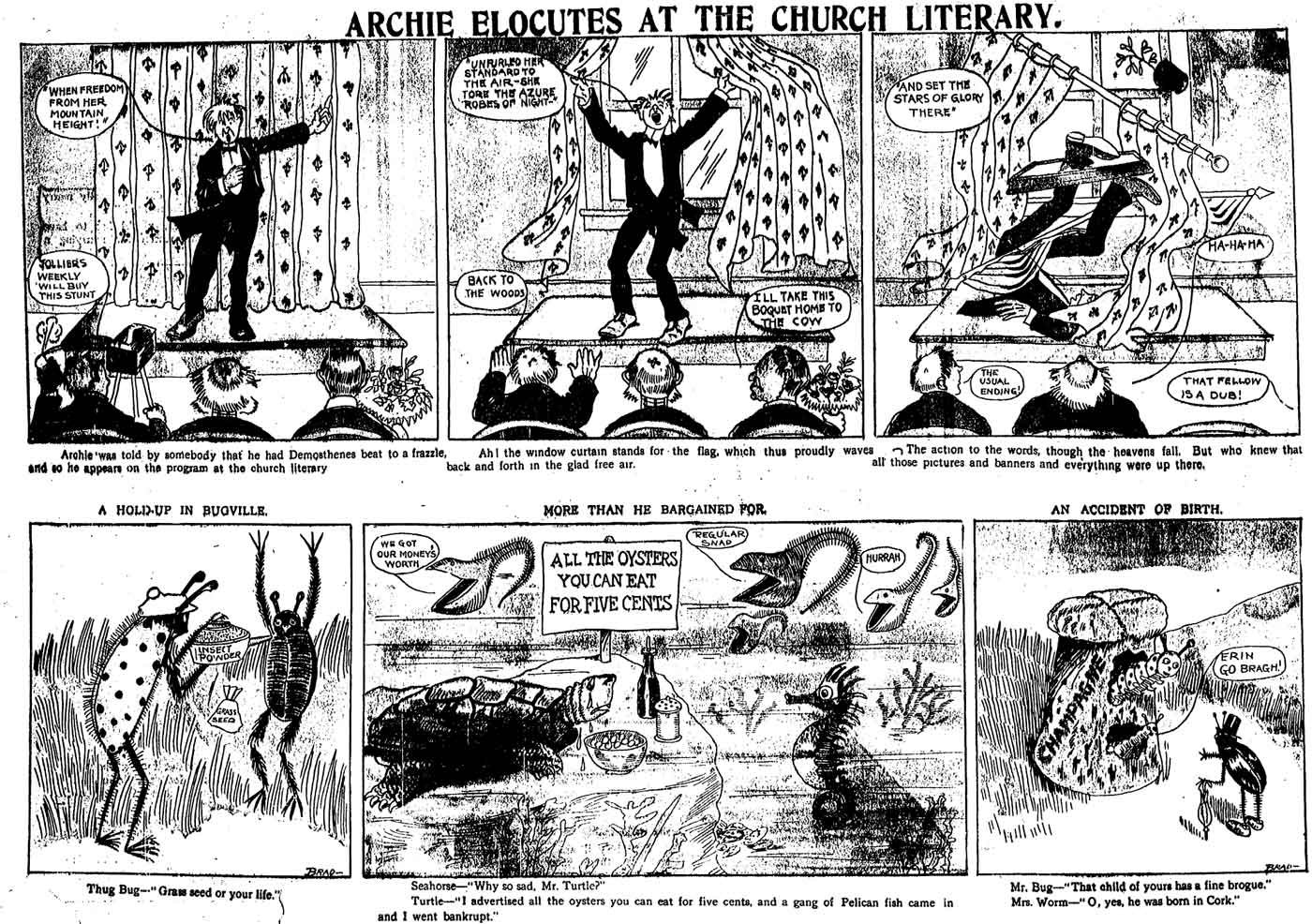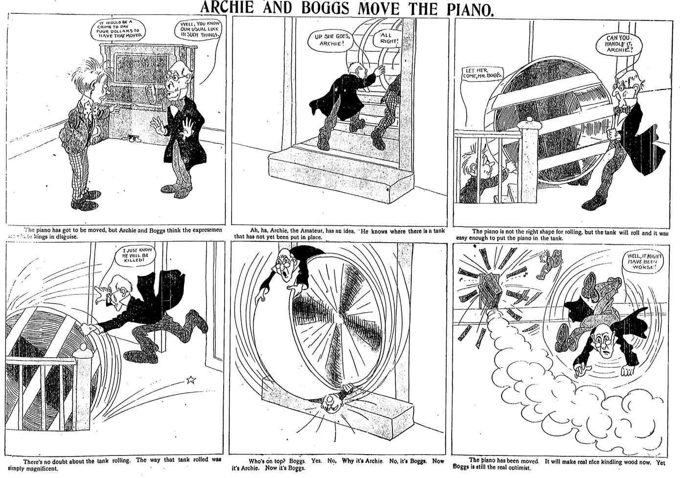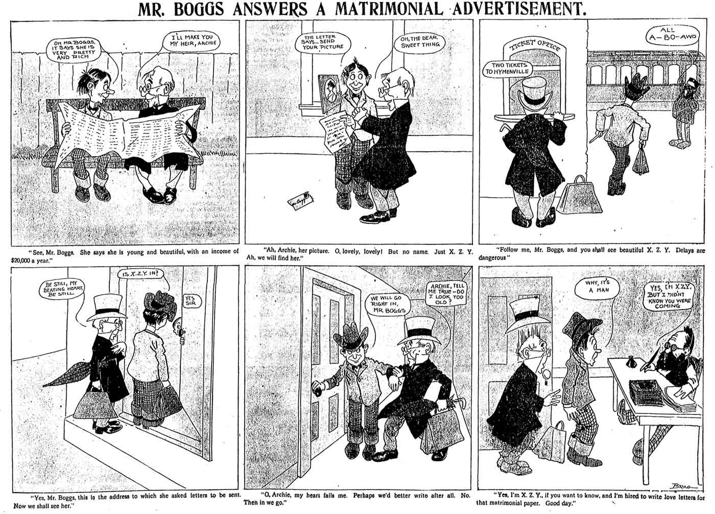 Archie the Amateur & Boggs the Optimist, Ingenious Ruggles, Innocent Ike, Oliver Meddle, and Superstitious Muggs were all created by the ubiquitous "Brad" Bradford, and they all share the same dedication to naming conventions. Each character is summed up neatly by his appellation, and the gags unfold from there. Despite their hoary origins, there are some clever gags in these, and it's fun to see the characters intersect and cross over.