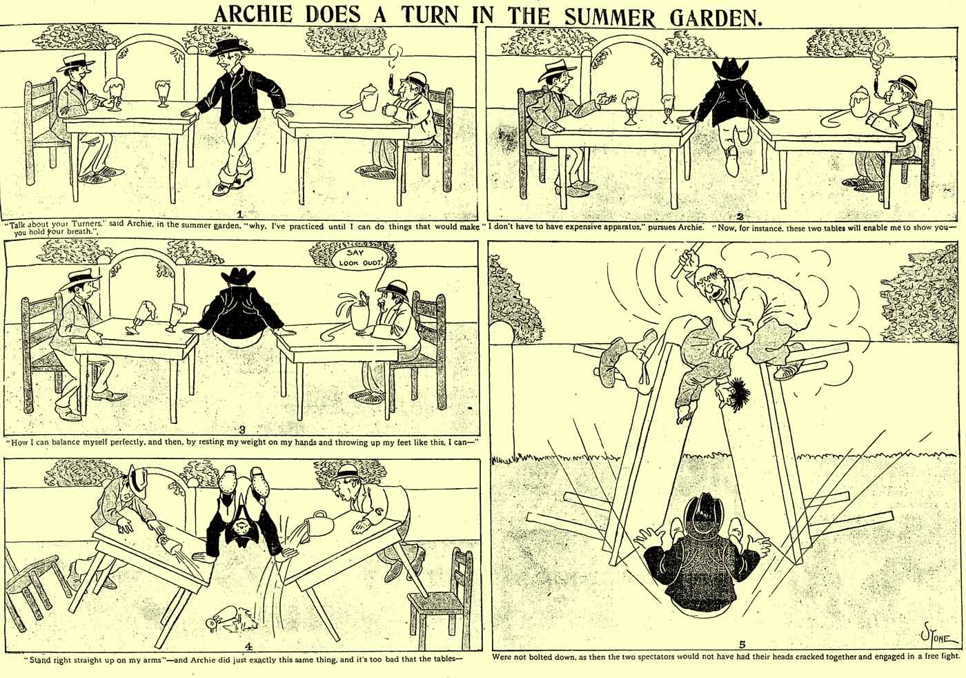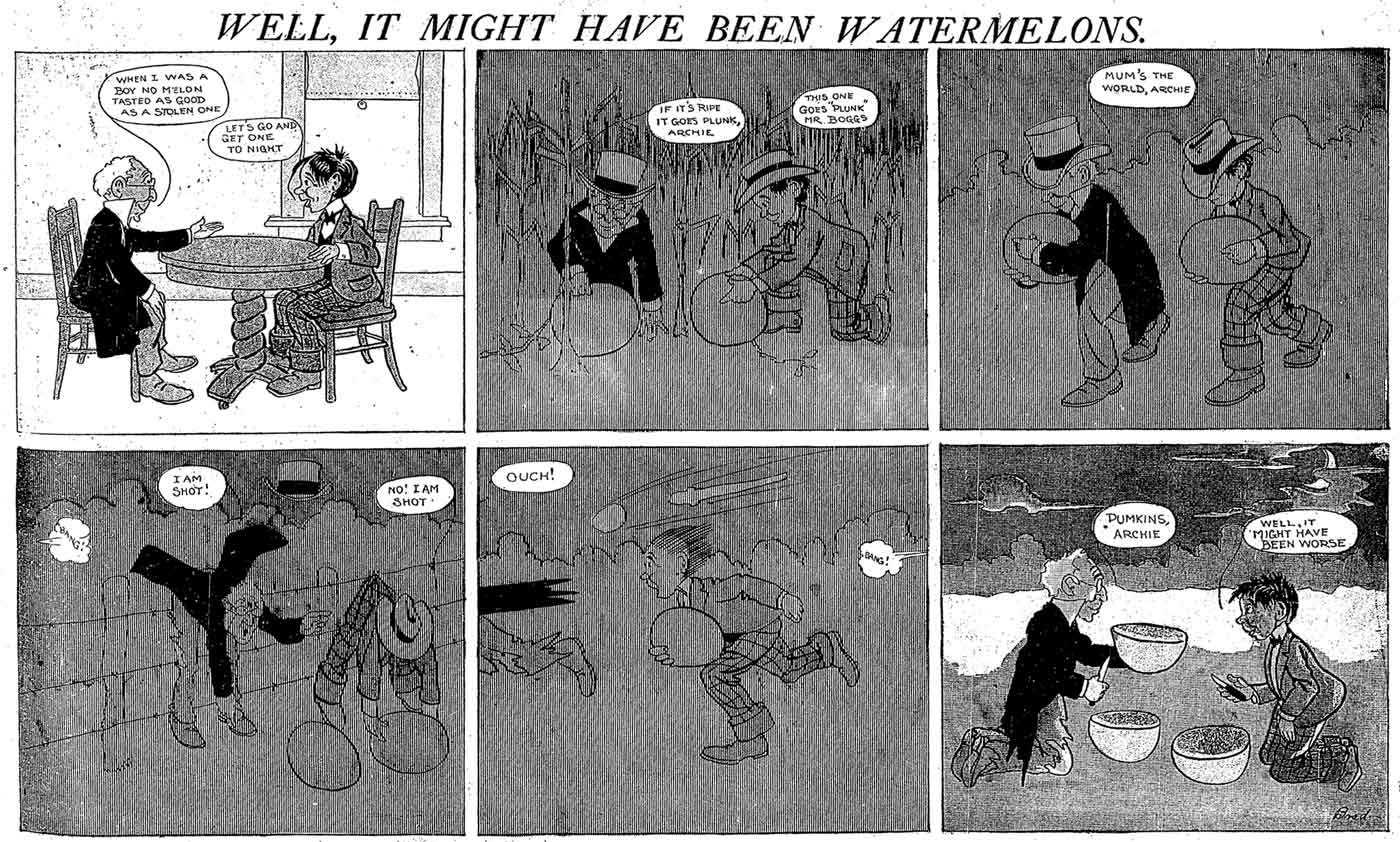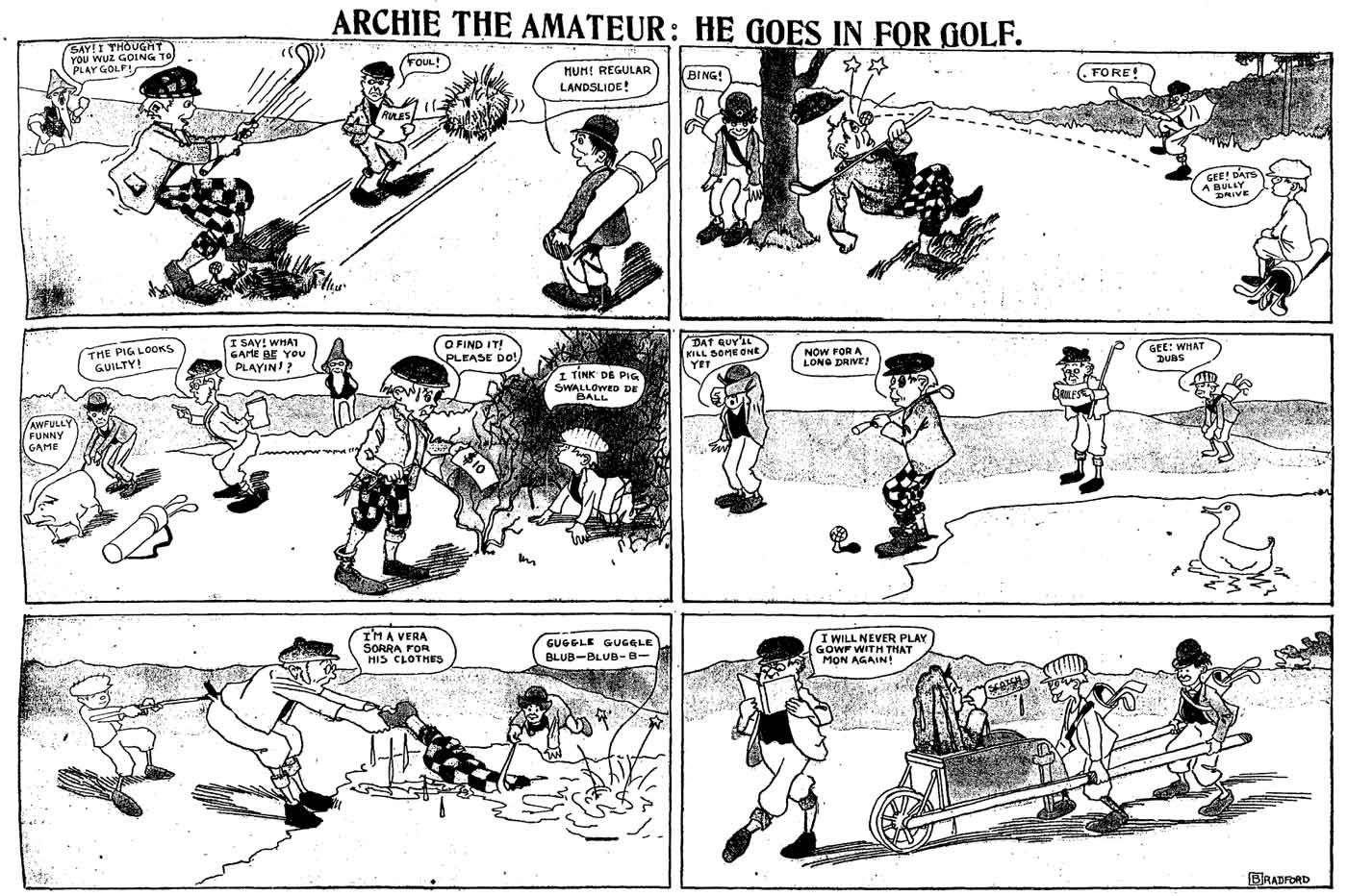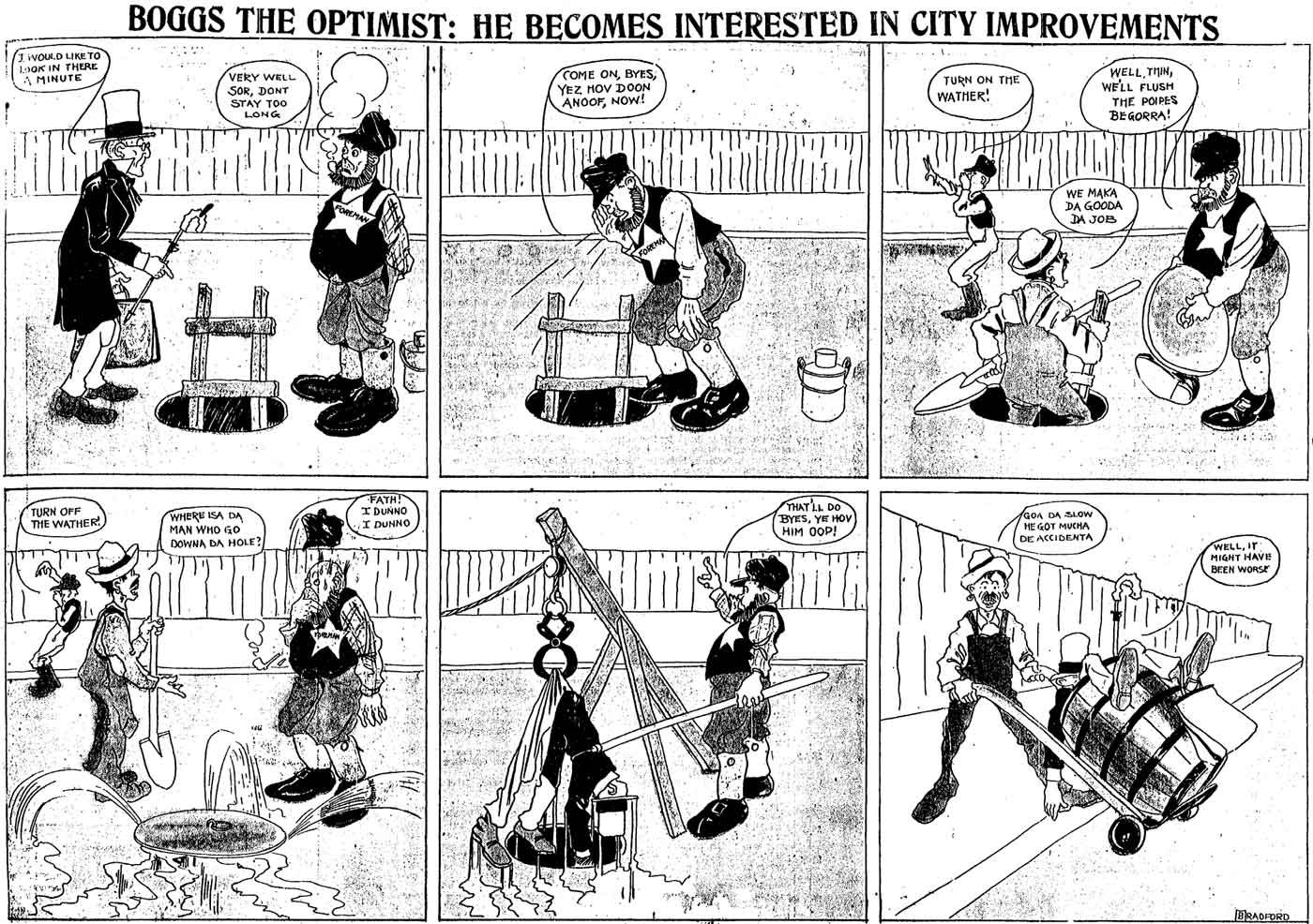 Archie the Amateur & Boggs the Optimist, Ingenious Ruggles, Innocent Ike, Oliver Meddle, and Superstitious Muggs were all created by the ubiquitous "Brad" Bradford, and they all share the same dedication to naming conventions. Each character is summed up neatly by his appellation, and the gags unfold from there. Despite their hoary origins, there are some clever gags in these, and it's fun to see the characters intersect and cross over.